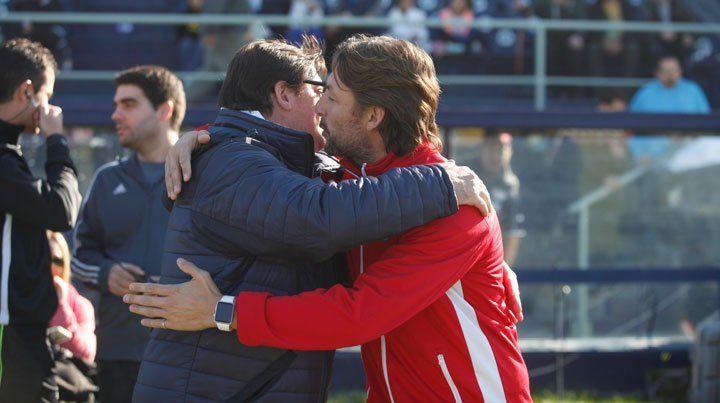En la previa al partido entre Independiente Rivadavia y Argentinos Juniors, por la fecha 37 de la Primera B Nacional, los técnicos de ambas instituciones con pasado y presente rosarino ya que son muy reconocidos y queridos en Newell's Old Boys se dieron un afectuoso abrazo.