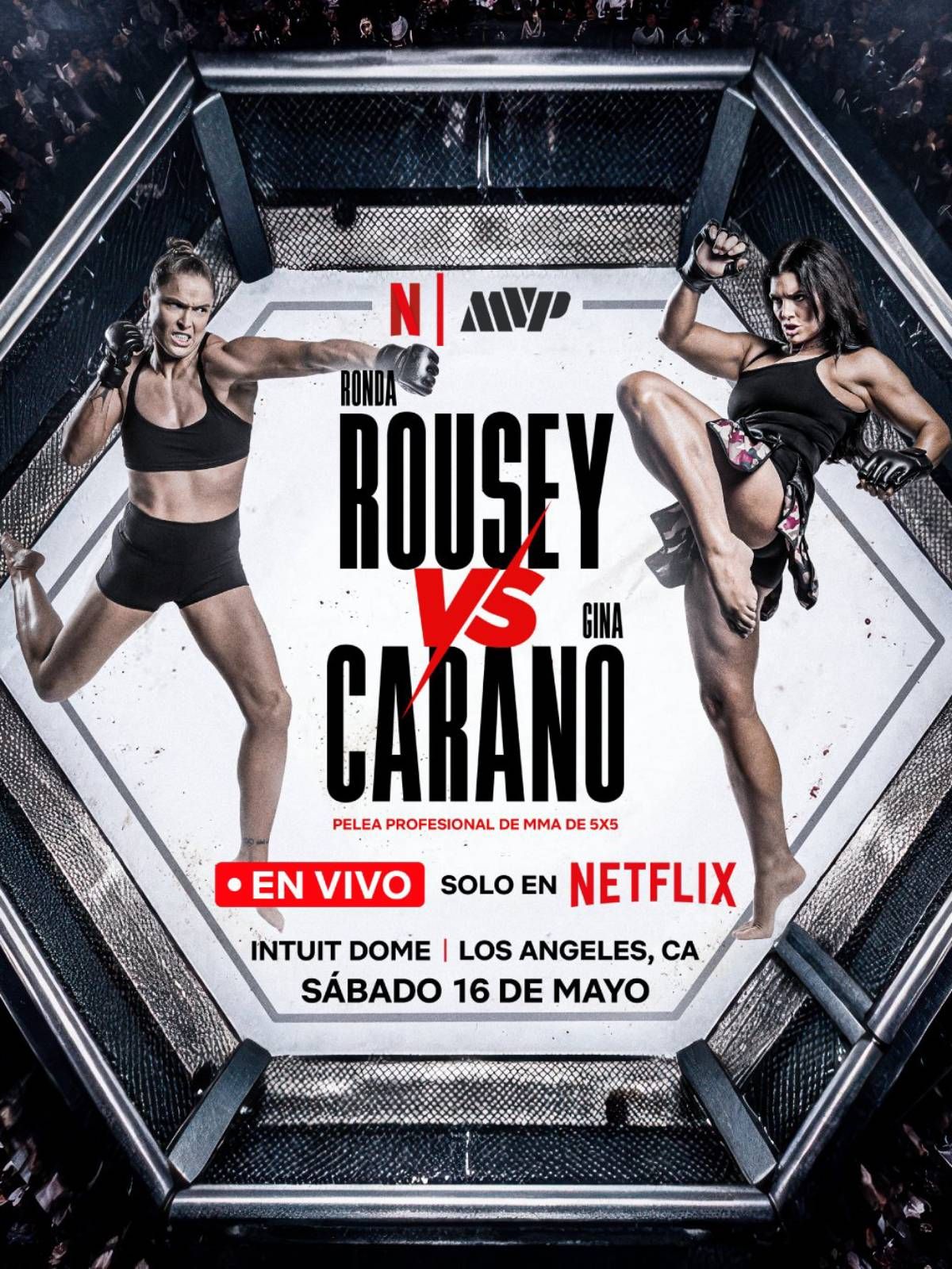La pelea entre Rowdy Rousey y Crush Carano será el primer evento de Artes Marciales Mixtas que televisará en vivo la plataforma Netflix,
