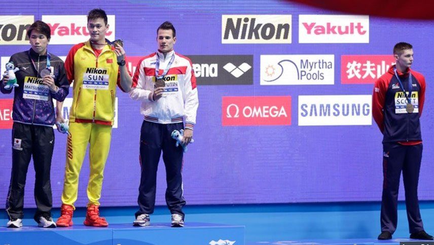 Sancionado en 2014 por tres meses, Yang está en el Mundial porque la FINA lo absolvió pese a que destruyó las muestras en un control sorpresa. La decisión de la FINA fue apelada por la Agencia Mundial Antidopaje (AMA) ante el Tribunal de Arbitraje Deportivo (TAS) pero la decisión se tomará en setiembre.