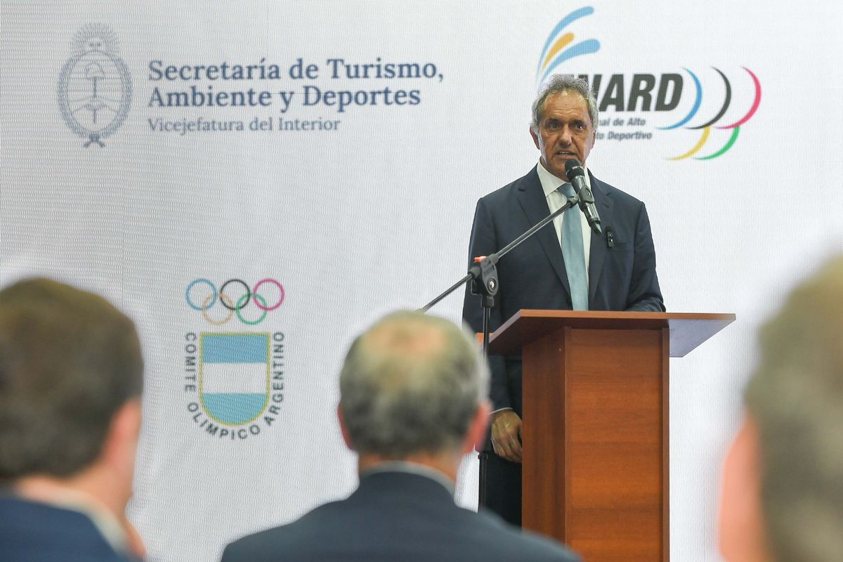 En el homenaje realizado en el Cenard estuvieron la canciller Diana Mondino y Daniel Scioli quien agradeció "el acompañamiento de las empresas que patrocinan para que en un esfuerzo conjunto con el Estado se puedan llevar adelante estos reconocimientos".