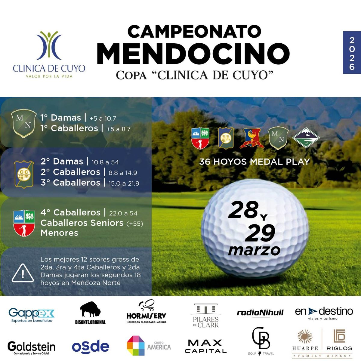 La segunda de damas y segunda y tercera de caballeros jugarán los primeros 18 hoyos en el Club de Campo y los 12 mejores disputarán los segundos 18 hoyos en Mendoza Norte.