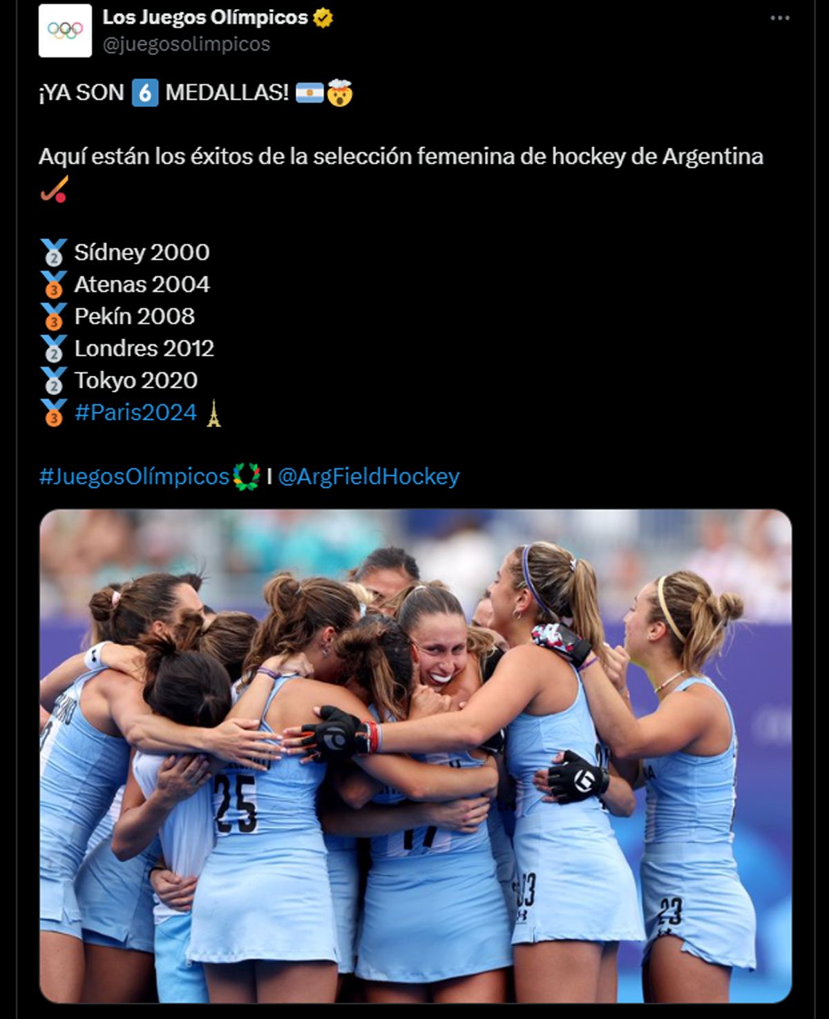 La conquista del seleccionado femenino consolida al hockey sobre césped como el tercer deporte con más podios olímpicos ya que fue el sexto en la rama femenina y se suma uno más conseguido por Los Leones en Río 2016.