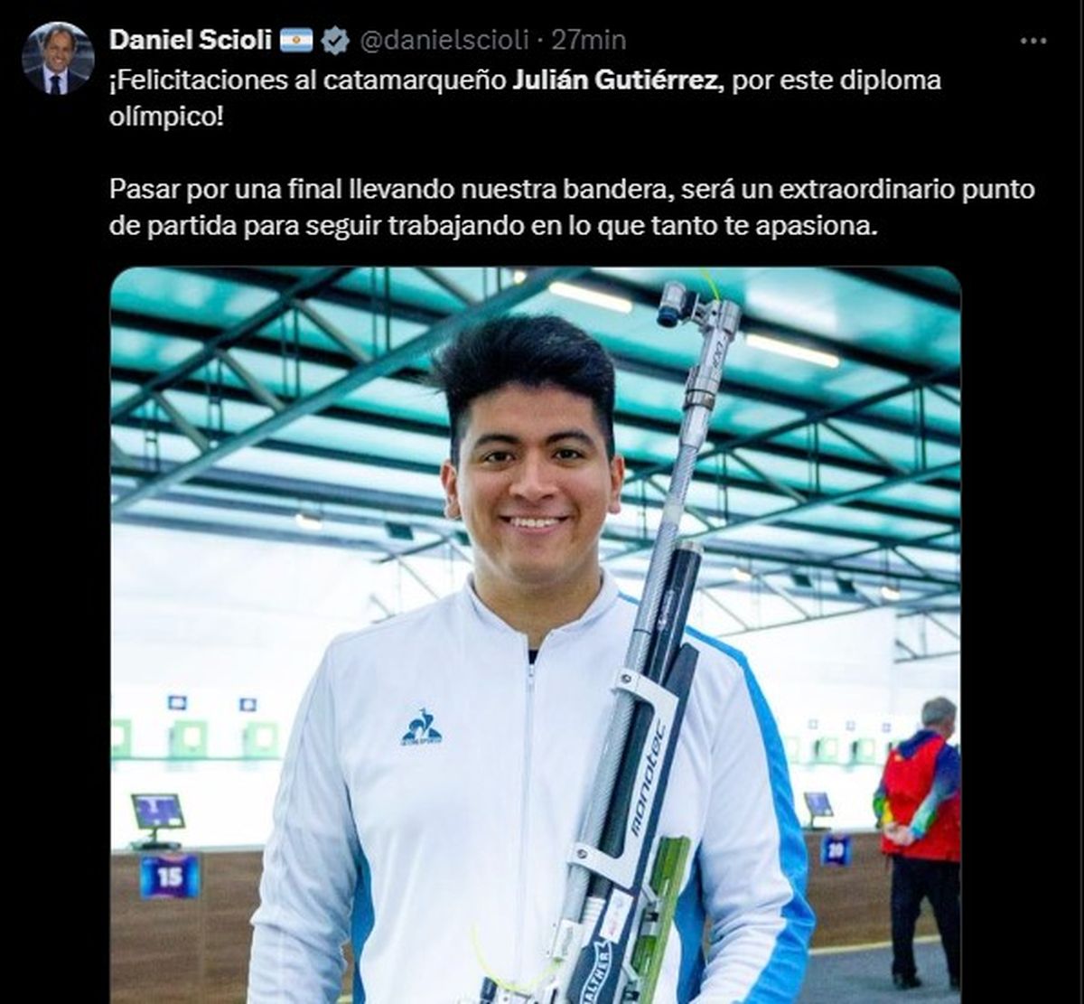 El octavo puesto de Julián Gutiérrez es lo mejor en la historia del deporte argentino en la categoría rifle de aire, la mejor actuación olímpica de un tirador masculino desde Firmo Roberti en skeet en Seúl 1988.