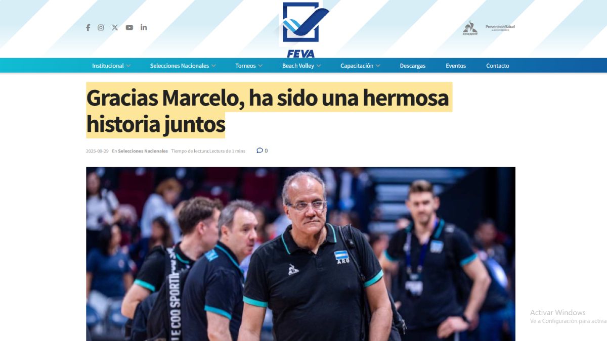 Hoy FeVA sólo tiene palabras de agradecimiento para uno de los mejores entrenadores que tiene el vóley mundial, que tuvimos la suerte de disfrutar por mucho tiempo y que nos instaló en la élite del voleibol, ojalá podamos decir que es un hasta luego. Gracias Marcelo, los mejores deseos para este presente en el Trentino".