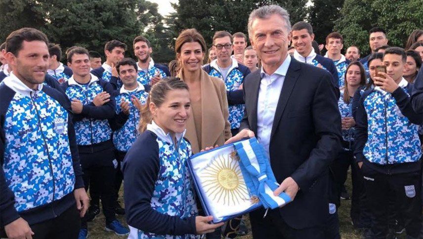Asimismo, los atletas le entregaron al líder del PRO y a su esposa, Juliana Awada, bolsos con la indumentaria que lucirán en los Juegos Panamericanos.