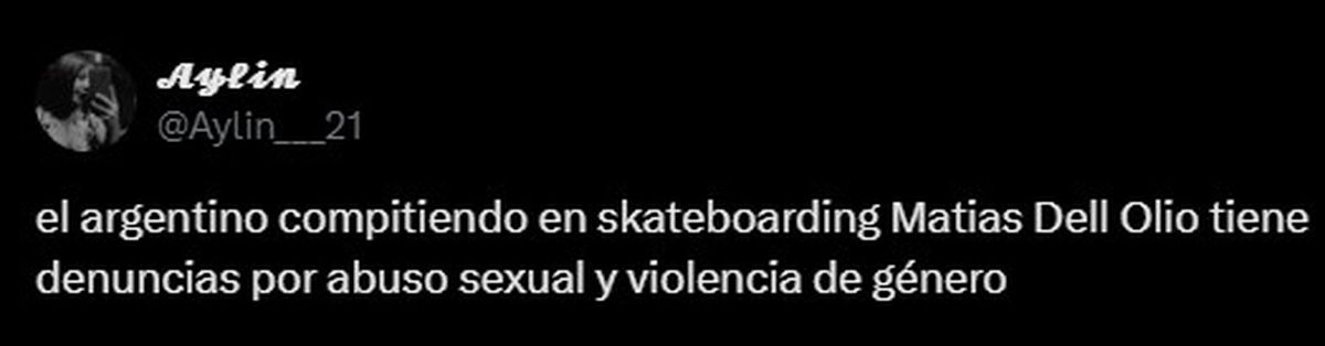 Dell Olio reside en Los Ángeles y su presencia en París 2024 representando al país fue cuestionada en las redes sociales por denuncias de violencia y abuso sexual.