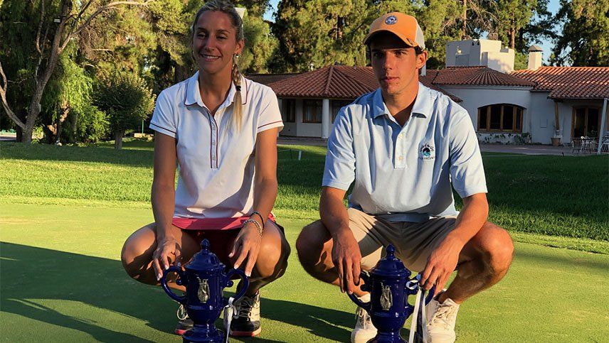 Dalera y Benenati, jugadores del Club de Campo mostraron un alto nivel de juego durante las dos jornadas y con 152 golpes (+12) y 140 (E), festejaron en el Parque.
