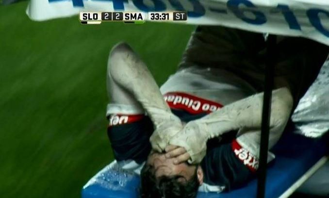 El llanto del juninense ex Sarmiento y Estudiantes de La Plata y sus gestos de dolor al retirarse en el carrito sanitario generaron mucha preocupación en San Lorenzo, que previamente había sufrido la baja de Fabricio Coloccini.
