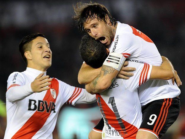 A pesar de haber guardado a todos los titulares porque tiene la cabeza puesta en la Copa Libertadores, River dejó una buena imagen para ganarle 3 a 1 a Colón en el estadio Monumental y, con un partido más, quedar como puntero de manera transitoria del torneo "Julio Humberto Grondona" junto con Boca.En un partido válido por la décimo octava fecha, el visitante se adelantó en el marcador gracias a un tanto de Germán Conti, a los 31 minutos y en una posición adelantada muy difícil de advertir, luego de un perfecto tiro libre combado de Alan Ruiz.