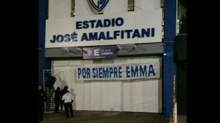 "Por siempre Emma", "En Velez no se juega" y "Esta tribuna no se mancha con los colores que lo asesinaron", fueron los mensajes que aparecieron en la sede del club.
