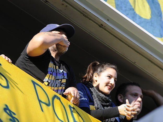Diego colgó en su palco un trapo amarillo y azul, especialmente dedicado al Apache.