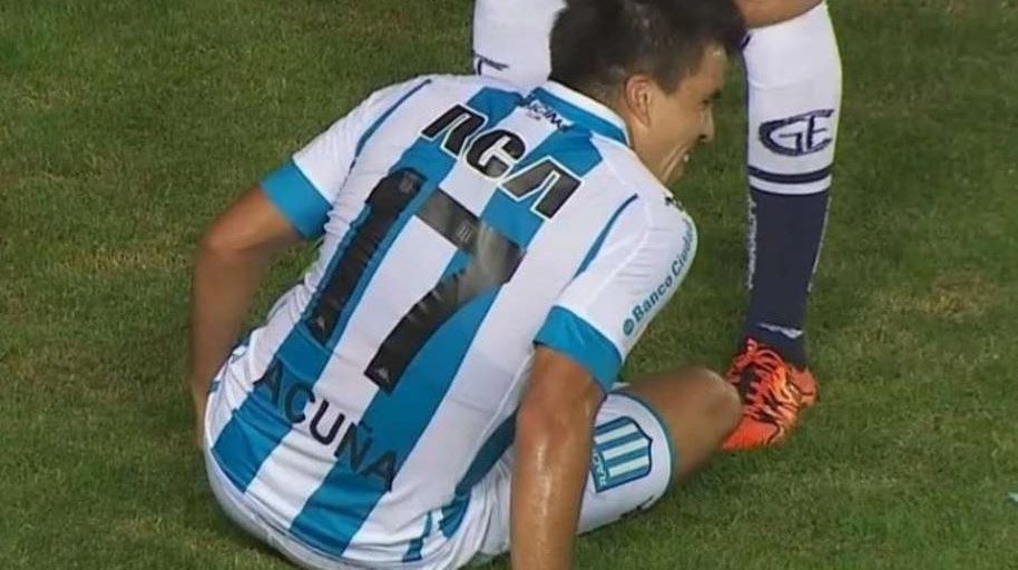 Marcos Acuña, mediocampista de Racing y del seleccionado argentino, sufrió un desgarro que le demandará aproximadamente dos semanas de recuperación, motivo por el cual se perderá el clásico del próximo domingo ante Independiente, correspondiente a la fecha 24 del Campeonato de Primera División.Acuña, de 25 años, se sometió a estudios médicos que dieron como resultado una lesión muscular grado 2 en el bíceps femoral del miembro inferior izquierdo sufrida en la victoria por 1-0 del último sábado ante Gimnasia y Esgrima La Plata. El "Huevo" salió reemplazado a los 27 minutos de la segunda etapa por Santiago Rosales en el choque ante el "Lobo" platense tras sentir una molestia en la parte posterior de su pierna. Así, el neuquino se perderá el clásico de la próxima jornada ante el 'Rojo' como también el compromiso de la 25ta. fecha frente a Rosario Central, a disputarse en el estadio "Gigante de Arroyito".