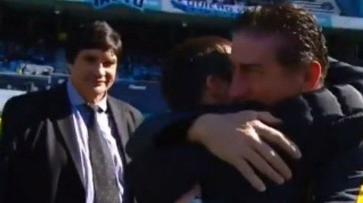Ambos técnicos se fundieron en un abrazo y las cámaras de la televisión registraron las palabras del Patón, que le dice al oído: "Armaste un equipo bárbaro".