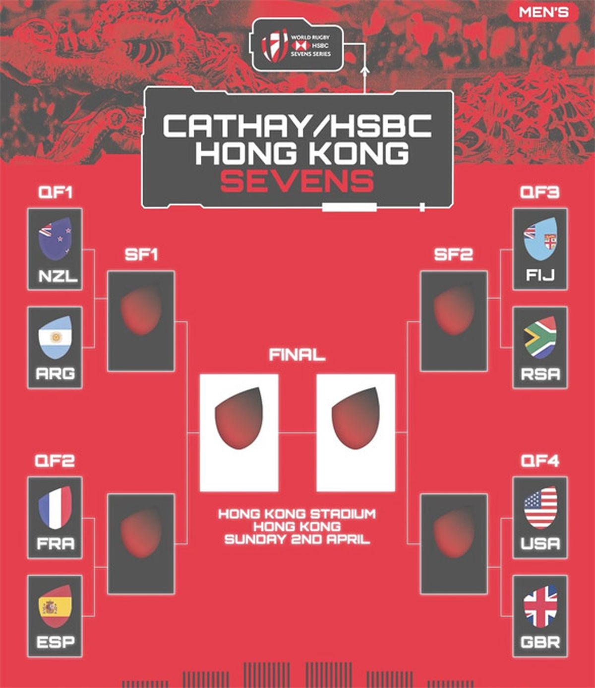 En otros resultados del Grupo, Fiji, que jugará en cuartos ante Sudáfrica, le ganó a Samoa 12 a 7 y Canadá 40 a 7, mientras que Samoa superó a Canadá por 29 a 5.