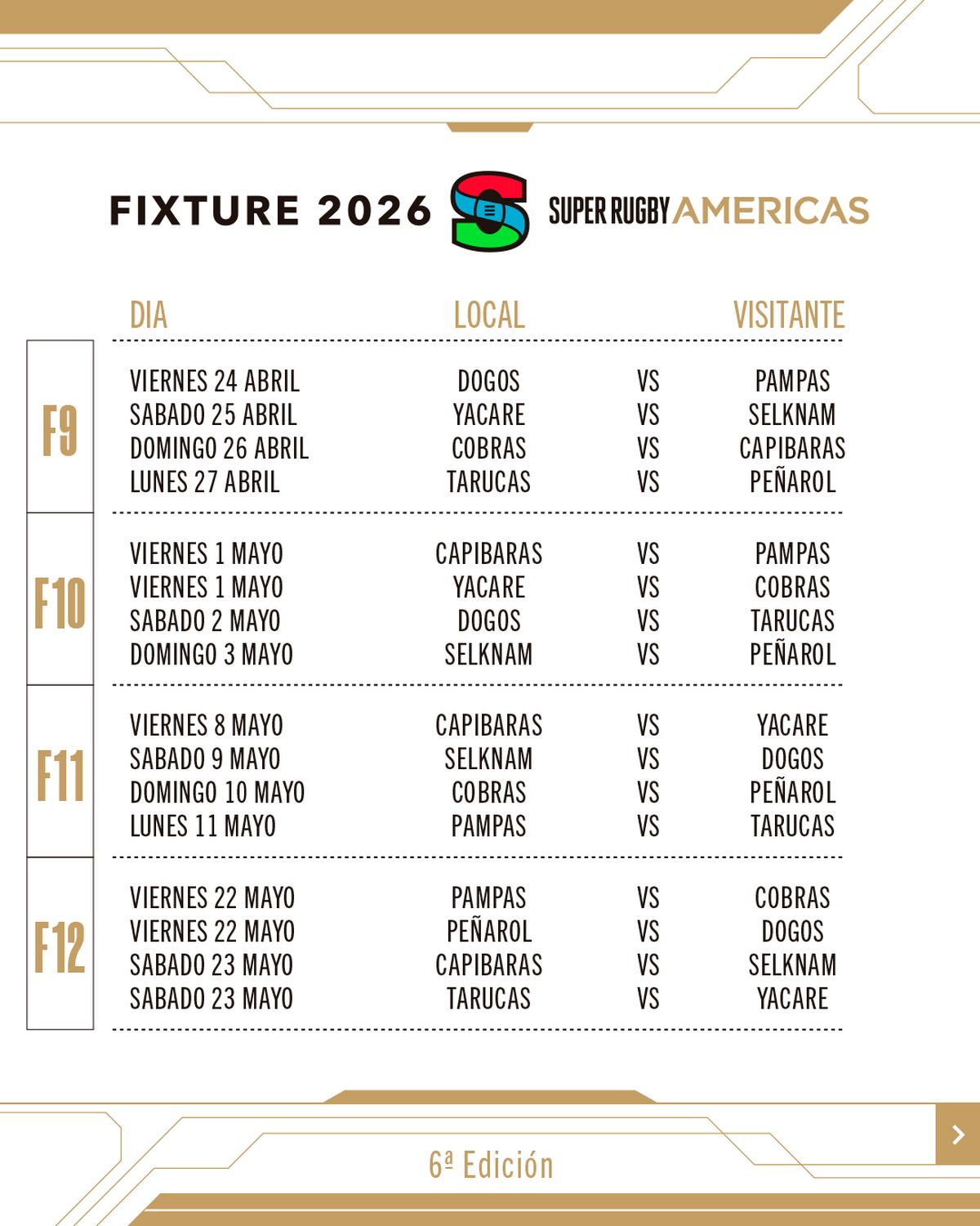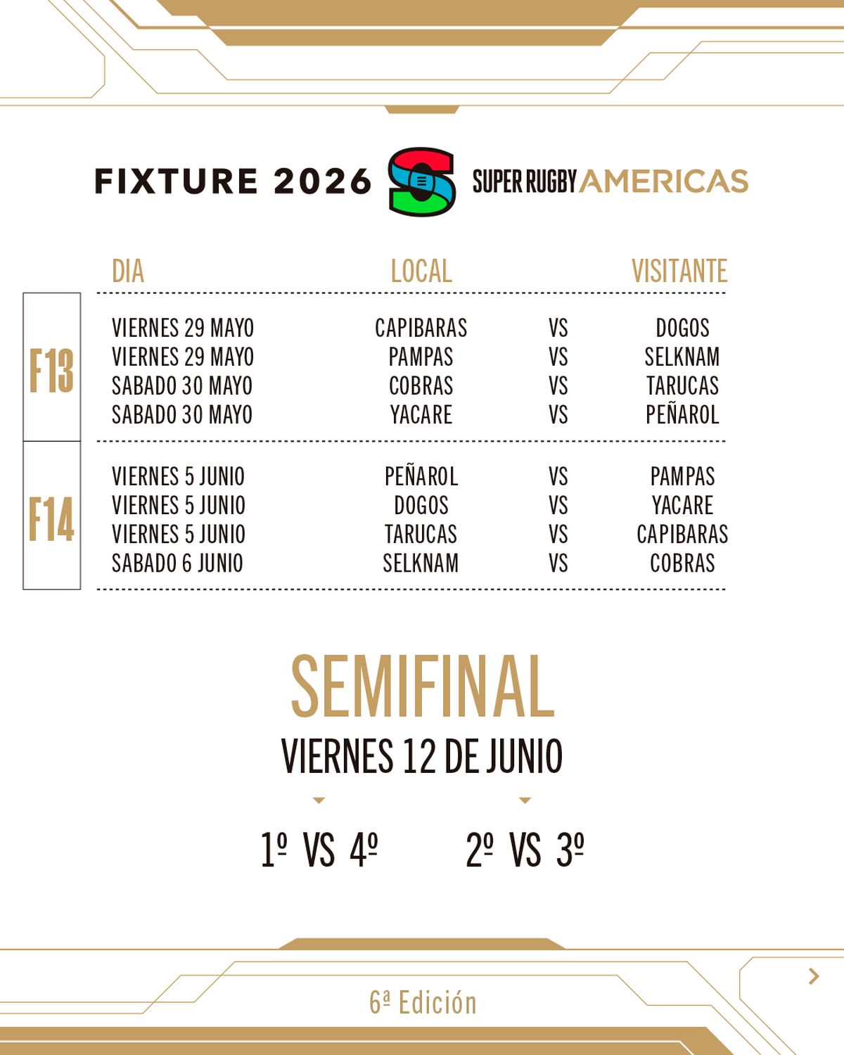El Súper Rugby Américas anunció el fixture de la edición 2026 con la novedad de la incorporación de Capibaras XV, la franquicia con sede en el Litoral.