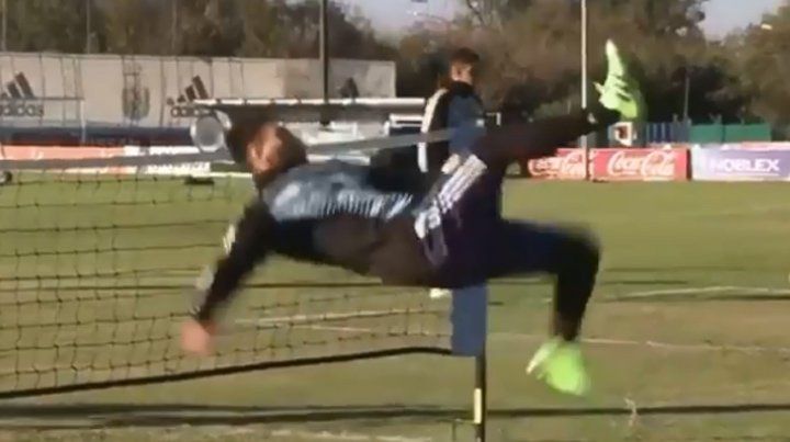 El astro mundial Lionel Messi sorprendió a todos en el entrenamiento de la Selección argentina con una particular chilena en medio de un fútbol tenis.