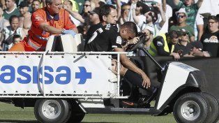 Un poco antes de que finalizara el primer tiempo del encuentro, que terminó 2-2 en el estadio Benito Villamarín, el lateral argentino intentó tirar un centro y se llevó la mano a la parte posterior de su muslo.