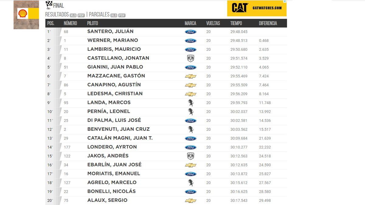 En un desarrollo dramático, con Santero defendiendo con uñas y dientes el primer lugar, la bandera a cuadros lo terminó coronando en la sexta cita del TC, por delante de Werner y Mauricio Lambiris.