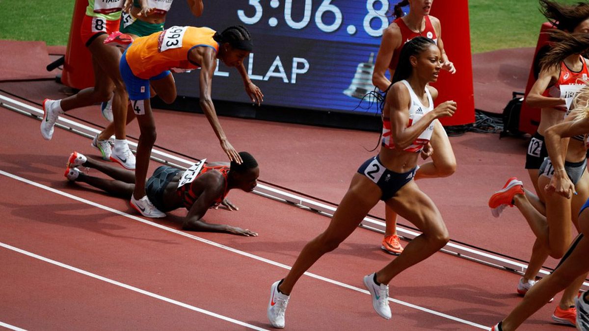 Sifan Hassan se cayó en plena competencia y quedó relegada a la última posición. Y cuando parecía que su sueño estaba por esfumarse, a fuerza de voluntad y corazón, comenzó una remontada épica, llegando a pasar a todas en los últimos metros, sacando boleto a las semifinales de la distancia.