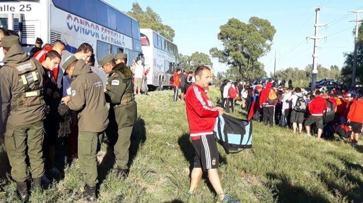 Dentro del operativo de seguridad ya se revisaron más de 60 micros, entre los cuales ya pasaron los de la facción de la barrabrava "Los Borrachos del Tablón".