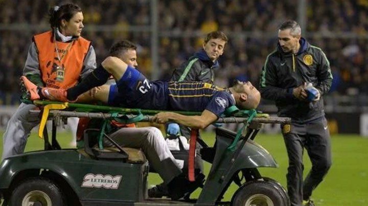 El futbolista fue trasladado directamente desde el estadio "Gigante de Arroyito" al Sanatorio Mapacci, donde se le controló el proceso inflamatorio y se trató el dolor.