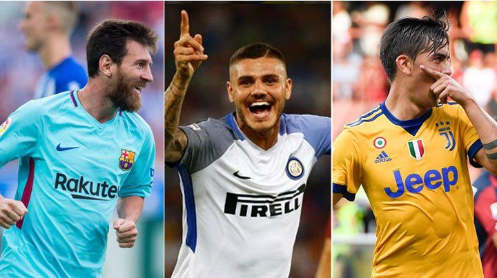 Los delanteros argentinos Lionel Messi, Paulo Dybala y Mauro Icardi marcaron este sábado dos, tres y dos goles para las victorias de Barcelona, Juventus e Inter respectivamente. De esta manera llegan afilados de cara a la doble fecha por las Eliminatorias Sudamericanas para el Mundial Rusia 2018.