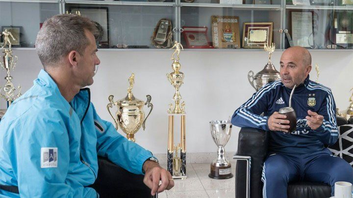 El entrenador de la Selección argentina de fútbol, Jorge Sampaoli, recibió a su par de tenis, Daniel Orsanic, para compartir experiencias en una charla de dos horas, celebrada en el predio "Julio Humberto Grondona" de Ezeiza.