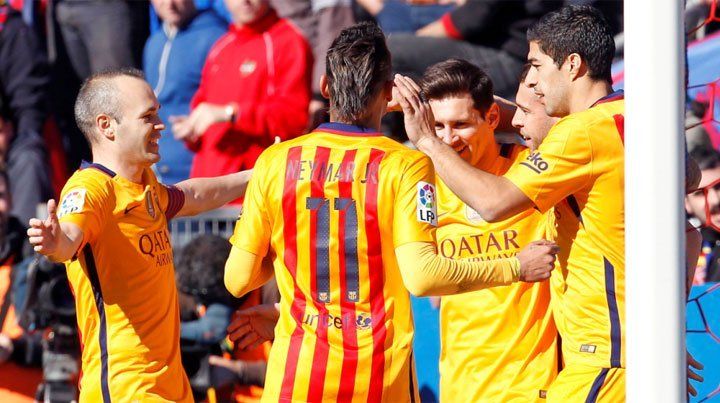 Barcelona lidera con 54 puntos y una ventaja de tres que puede ampliarse a seis si gana un partido que tiene pendiente ante Sporting de Gijón desde diciembre cuando participaba del Mundial de Clubes en Japón. Lionel Messi, que marcó un gol mal anulado por posición adelantada en el primer tiempo y luego asistió a Suárez para el último tanto, fue titular al igual que su compatriota Javier Mascherano, mientras que Lucas Orban permaneció en el banco de suplentes de Levante.