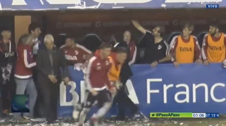El acto fue considerado una provocación por muchos simpatizantes que lo advirtieron y, tanto en el momento, como en las redes sociales cuando el gesto se vio por televisión, le dijeron de todo al técnico de River.