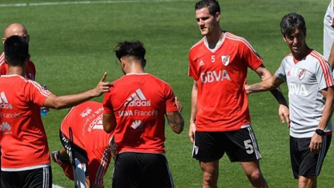 El probable once forma con Armani; Montiel, Martínez Quarta, Pinola, Saracchi; Mayada, Ponzio, Enzo Pérez, Martínez; Scocco y Pratto.