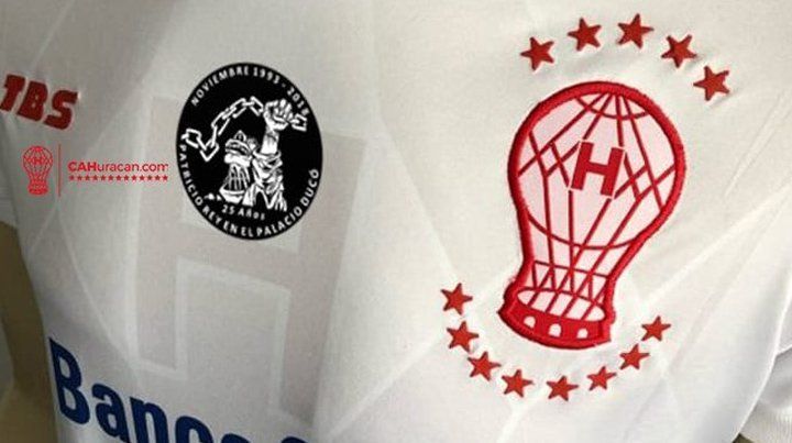 La página web de Huracán publicó la imagen del parche que fue impreso en el centro de la camiseta con la imagen del disco Oktubre (1986) y la leyenda "Noviembre 1993-2018 - Patricio Rey en el Palacio Ducó".