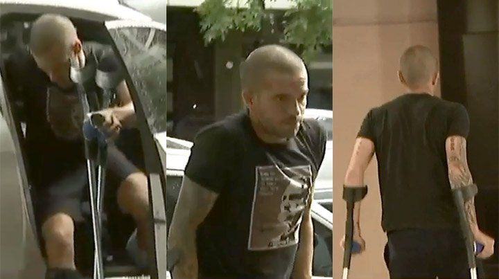Gago fue llevado al consultorio de Batista por su esposa, la ex tenista Gisela Dulko, y descendió del vehículo ayudado por muletas para no apoyar la pierna derecha.