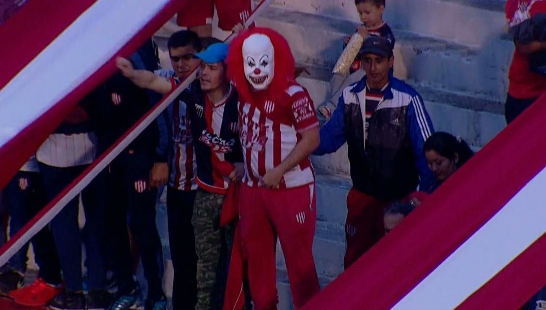 Tanto es el boom por este personaje que se han visto apariciones del payaso maldito en diferentes escenarios. Eso fue lo que pasó este viernes cuando en pleno partido entre Unión y Olimpo se divisó en la tribuna tatengue a IT con la camiseta del club santafesino.
