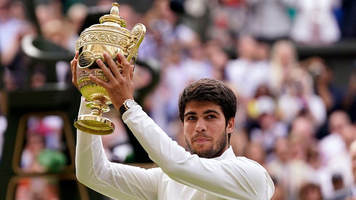 El español Carlos Alcaraz se coronó este domingo campeón de Wimbledon, luego de vencer en una verdadera batalla a cinco sets al serbio Novak Djokovic.