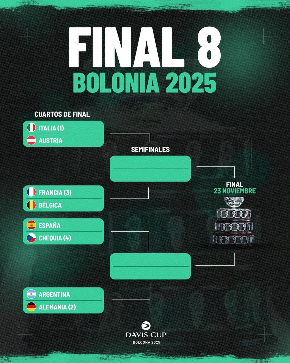El Final 8 de la Copa Davis 2025 se iniciará este martes, en la ciudad italiana de Bologna, con Argentina entre los aspirantes al título y la ausencia de los dos mejores del mundo: Carlos Alcaraz y Jannik Sinner.