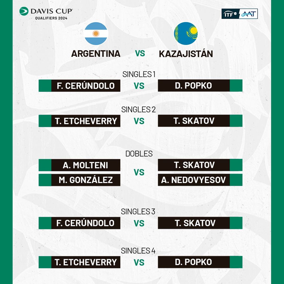 Francisco Cerúndolo, mejor tenista argentino de la actualidad, abrirá este sábado en Rosario la serie de Copa Davis ante Kazajistán frente a Dmitry Popko, y luego Tomás Etcheverry jugará el segundo punto de singles ante Timofey Skatov.