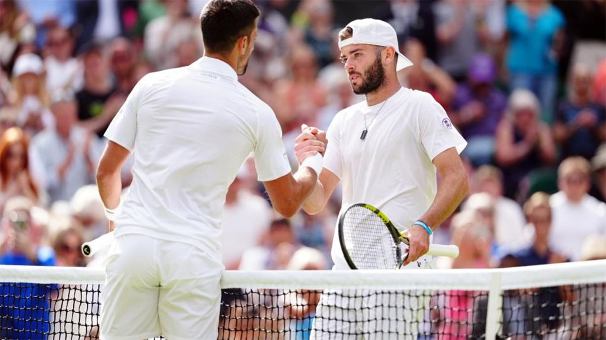 Novak Djokovic venció este jueves al británico Jacob Fearnley por 6-3, 6-4, 5-7 y 7-5 y se metió en la tercera ronda de Wimbledon