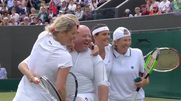 La reciente edición de Wimbledon no sólo regaló una función más del maestro Roger Federer, sino también momentos muy divertidos. Como el que sucedió en el partido exhibición entre las ex tenistas Kim Clijsters, Conchita Martinez, Andrea Jaeger y Rennae Stubbs. Allí, un espectador, que estuvo durante gran parte del encuentro gritando indicaciones, fue desafiado a ingresar al campo y demostrar su "habilidad". Aceptó, pero hizo el ridículo.
