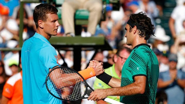El suizo Roger Federer (6) venció este jueves al checo Tomas Berdych (14) por 6-2, 3-6 y 7-6 (8-6) y se clasificó para las semifinales del Masters 1000 de tenis de Miami, que se juega sobre el cemento de Crandon Park y reparte premios por 6.993.000 dólares.