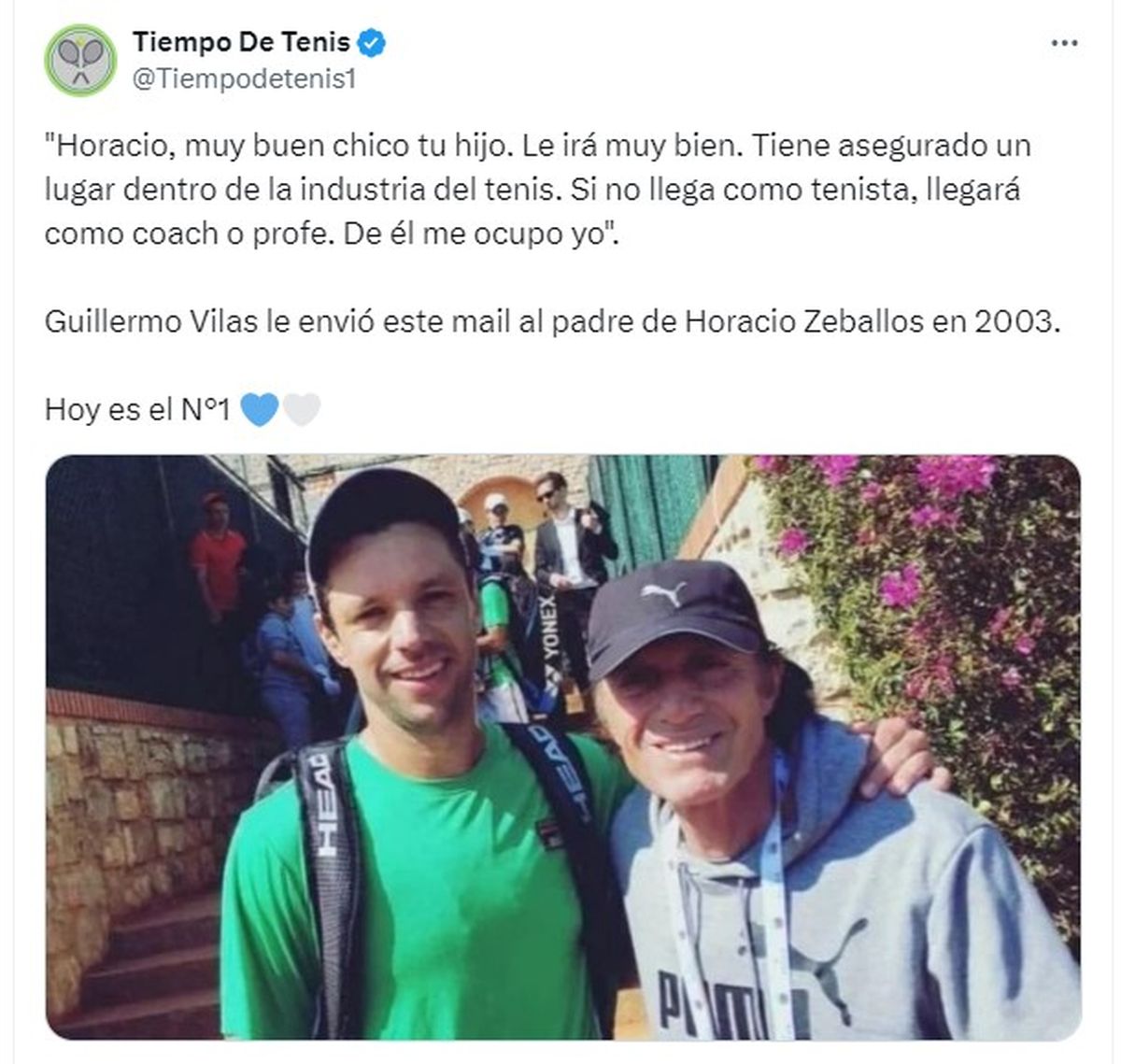 Lo curioso es que el Gran Willy fue un mentor de la carrera de Horacio Zeballos y hace más de 20 años, en 2003, le envió un mensaje a su padre y homónimo: "Horacio, muy buen chico tu hijo. Le irá muy bien. Tiene asegurado un lugar dentro de la industria del tenis. Si no llega como tenista, llegará como coach o profe. De él me ocupo yo".