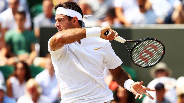 Juan Martín Del Potro completa el partido por los octavos de final de Wimbledon ante Gilles Simon, suspendido este lunes por falta de luz.