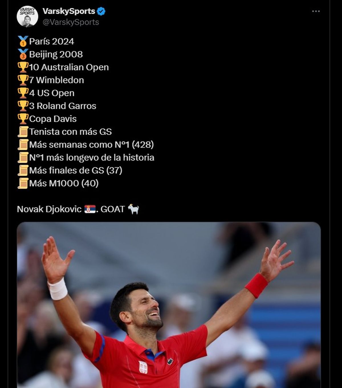En su quinta participación olímpica, y a los 37 años, Novak Djokovic venció a Carlos Alcaraz y se quedó con el único título que le faltaba: la medalla de oro de los Juegos Olímpicos París 2024.