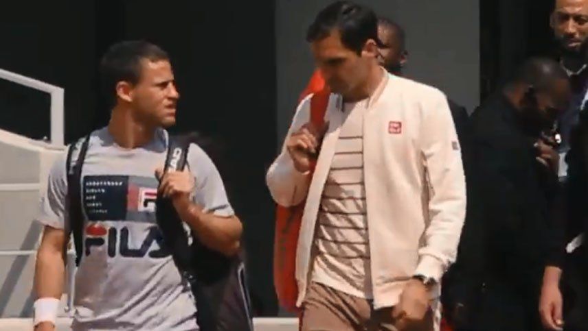 El suizo hizo su primer entrenamiento en el estadio Philippe Chatrier frente a Diego Schwartzman y la práctica del suizo con el Peque tuvo una visita de lujo: la de los futbolistas Leandro Paredes y Emiliano Rigoni.