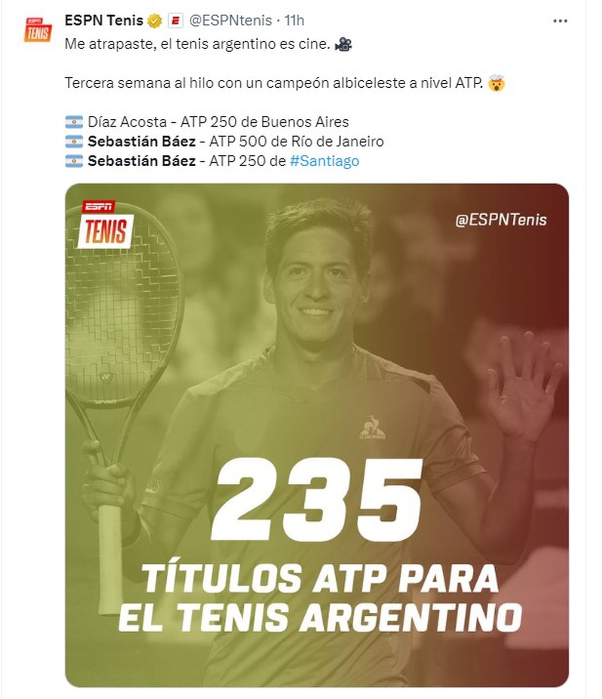 Con su victoria en Chile, Báez ingresó por primera vez en el top 20, pasó a ser el argentino mejor ubicado en el listado mundial y se tomó revancha de la derrota ante Tabilo las semifinales del año pasado en San Carlos de Apoquindo.