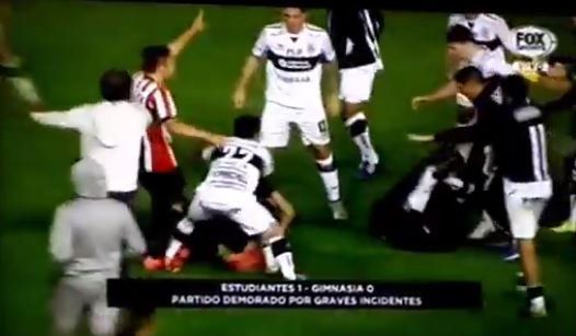 Apenas unos segundos antes el propio Mariano Andújar era el que repartía piñas contra los jugadores de Gimnasia.