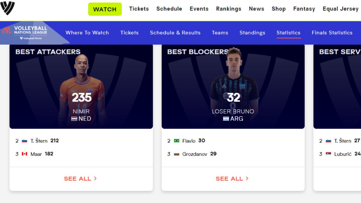 Esta semana la VNL dio a conocer las estadísticas de la fase regular o clasificatoria de la competencia, y el alvearense Agustín Loser quedó como Mejor Bloqueador, al sumar 32 puntos por esta vía luego de los tres weeks ligueros. Además el central aportó un total de 107 puntos, con 69 de ataque, los mencionados 32 de bloqueo, y 6 de servicio.