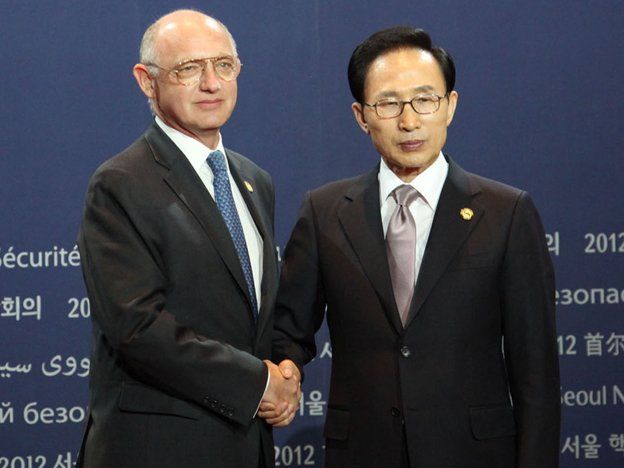 El canciller Héctor Timerman formuló un fuerte reclamo al señalar que “Argentina exige que confirmen la ausencia de armas nucleares en el Atlántico sur", cuando hizo uso de la palabra, en la Segunda Cumbre de Seguridad Nuclear que convoca a representantes de más de 50 países y organismos internacionales para analizar medidas de cooperación en seguridad nuclear, que se desarrolla en Seúl, capital de Corea del Sur.