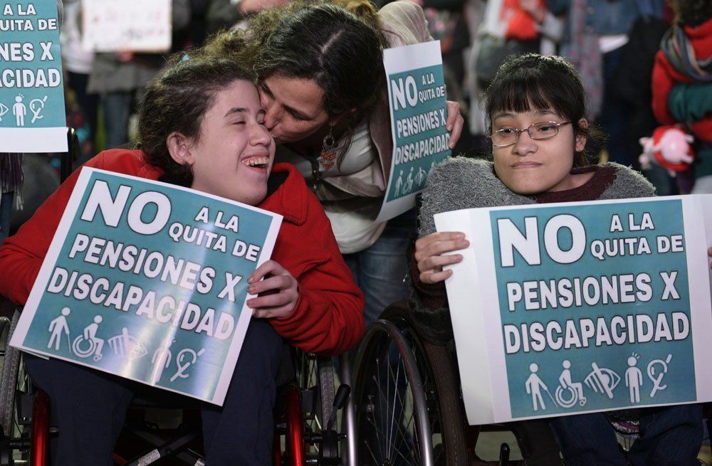 Cientos de discapacitados, familiares de ellos y representantes de organismos sociales y sindicales se concentraron en la Plaza de la República, frente al Obelisco, para repudiar el recorte de pensiones realizado por el Gobierno.