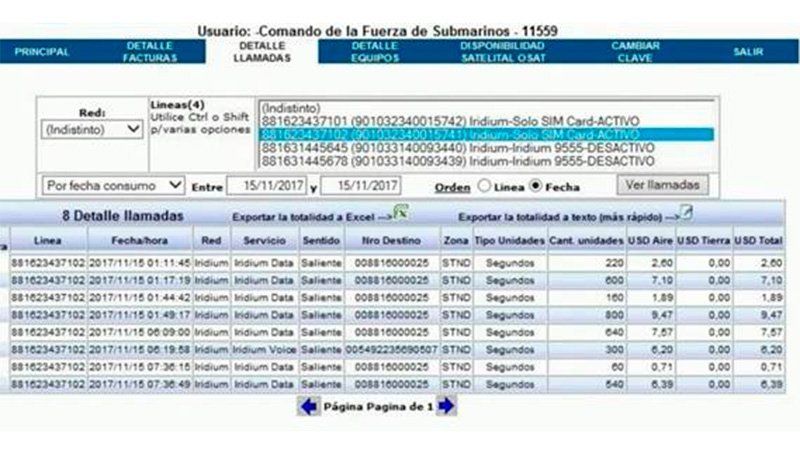 "Tenemos un listado que en su momento lo recibimos de la empresa que brinda el servicio satelital, corroborando la planilla de telefonía y datos. Son las primeras llamadas del comandante, informando de la falla y cortocircuito. Todo lo que decía por voz también lo hacía por datos por escrito, para no dejar dudas", explicó.