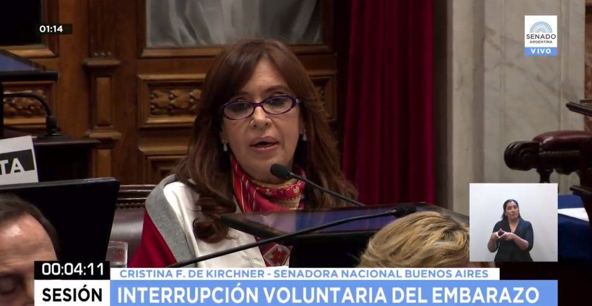 La ex presidenta Cristina Kirchner justificó su cambio de postura sobre la legalización del aborto y resaltó que "siempre votó y gobernó por la vida", tras lo cual repasó distintos hechos de su gestión como la "nulidad de obediencia de vida y punto final, el parto humanizado, ley de Educación Sexual Integral y ligadura de trompas", además de "identidad de género" y la figura de "femicidio".